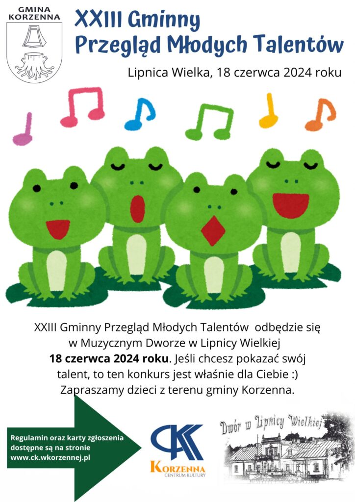 XXIII Gminny Przegląd Młodych Talentów – 18 czerwca 2024 roku. Serdecznie zapraszamy wszystkie dzieci z terenu gminy Korzenna.