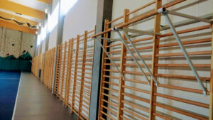 - 40 drabinek gimnastycznych przyściennych usytułowanych na całej „zachodniej” ścianie hali